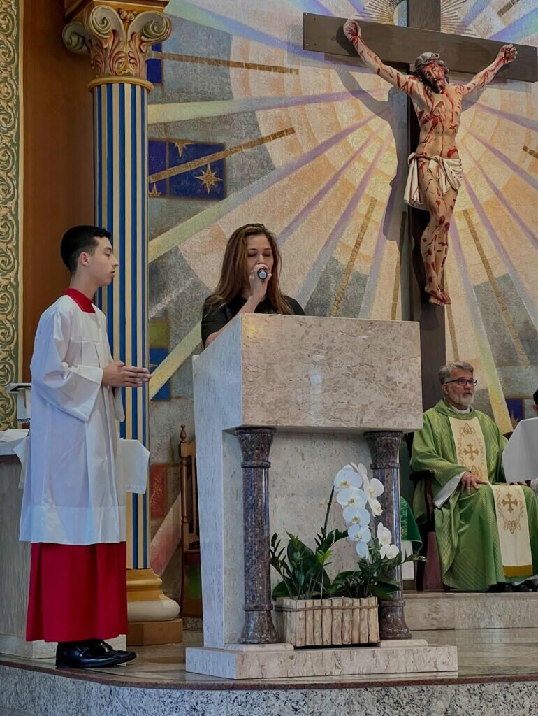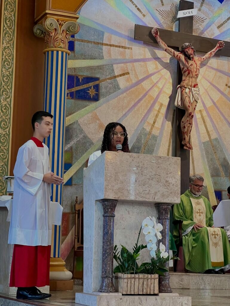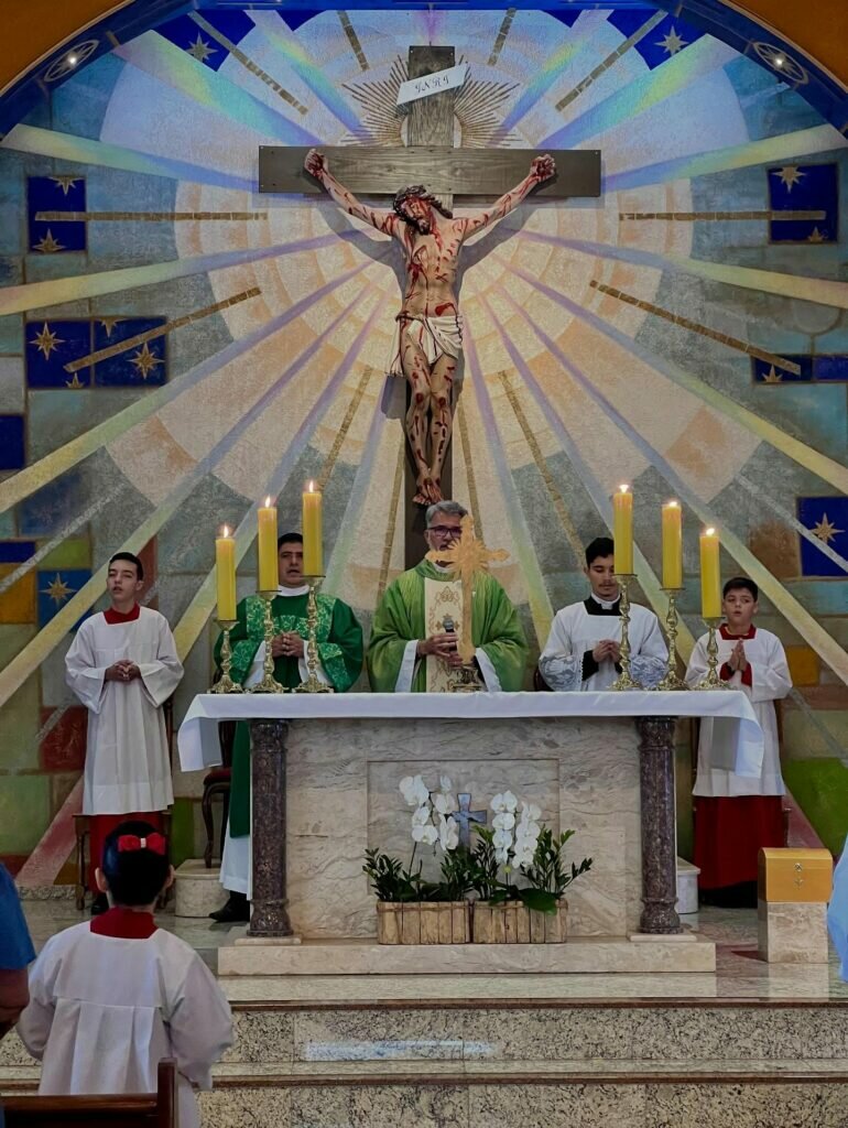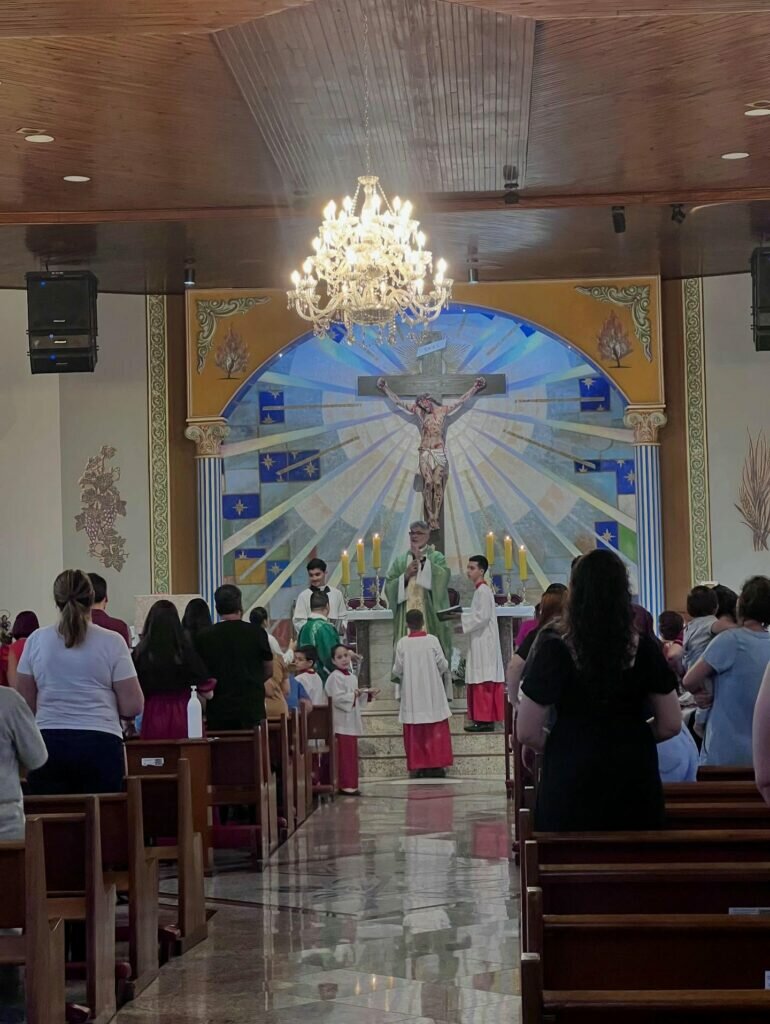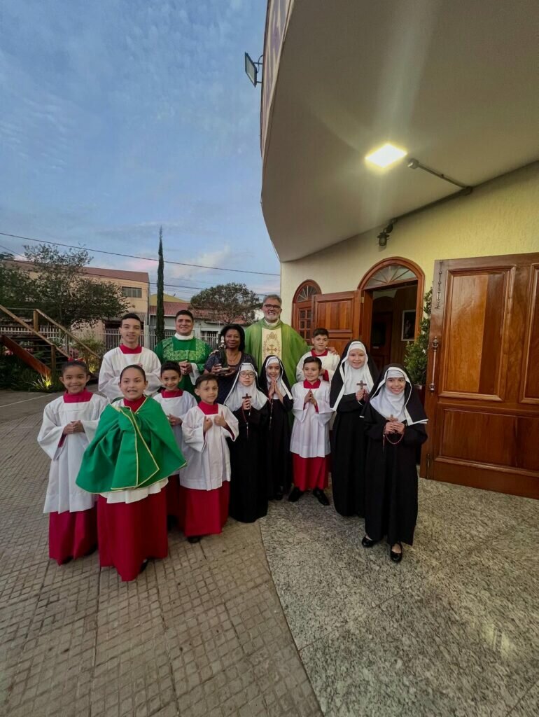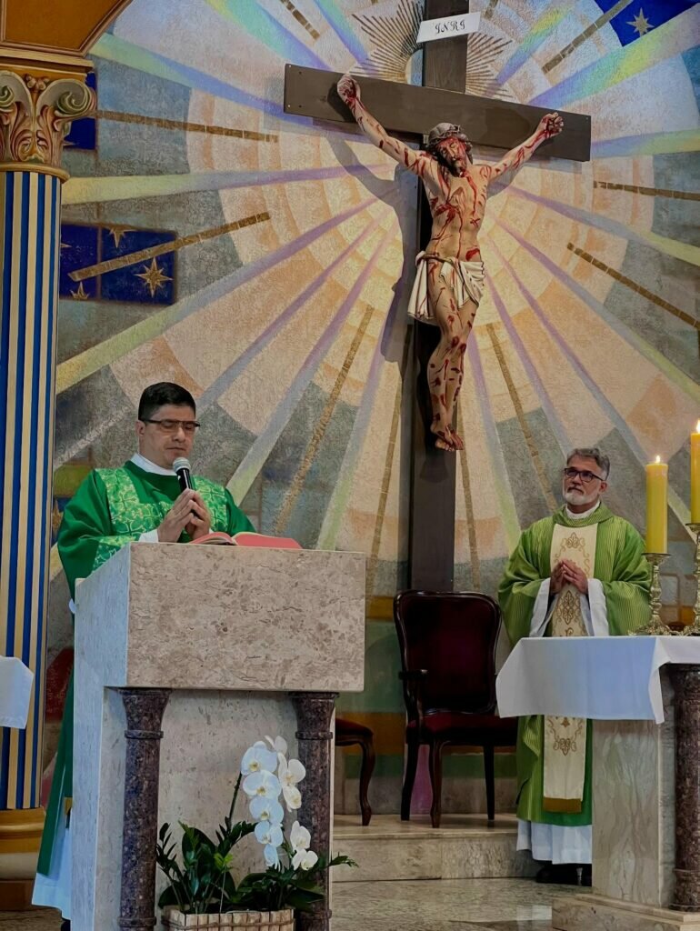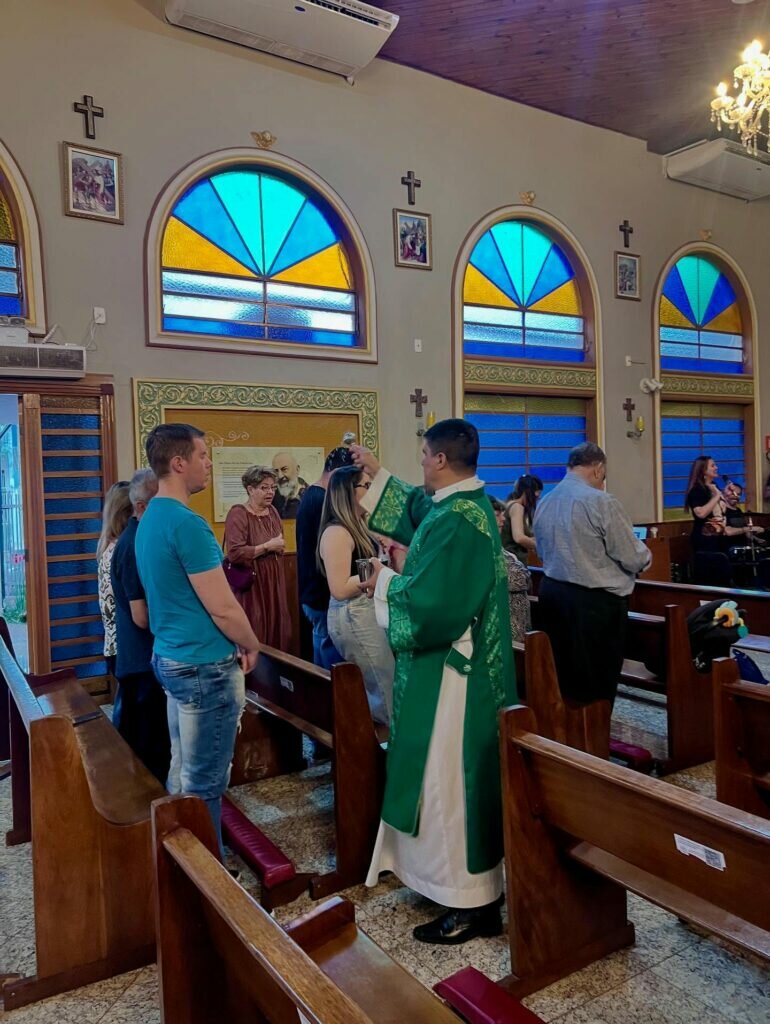 Na Missa do Romeiro de hoje, celebrada pelo padre Humberto, tivemos a alegria de acolher a benfeitora Heloísa, da Paroquia Nossa Senhora da Piedade, que com devoção trouxe em procissão a imagem de Santa Rita de Cássia.