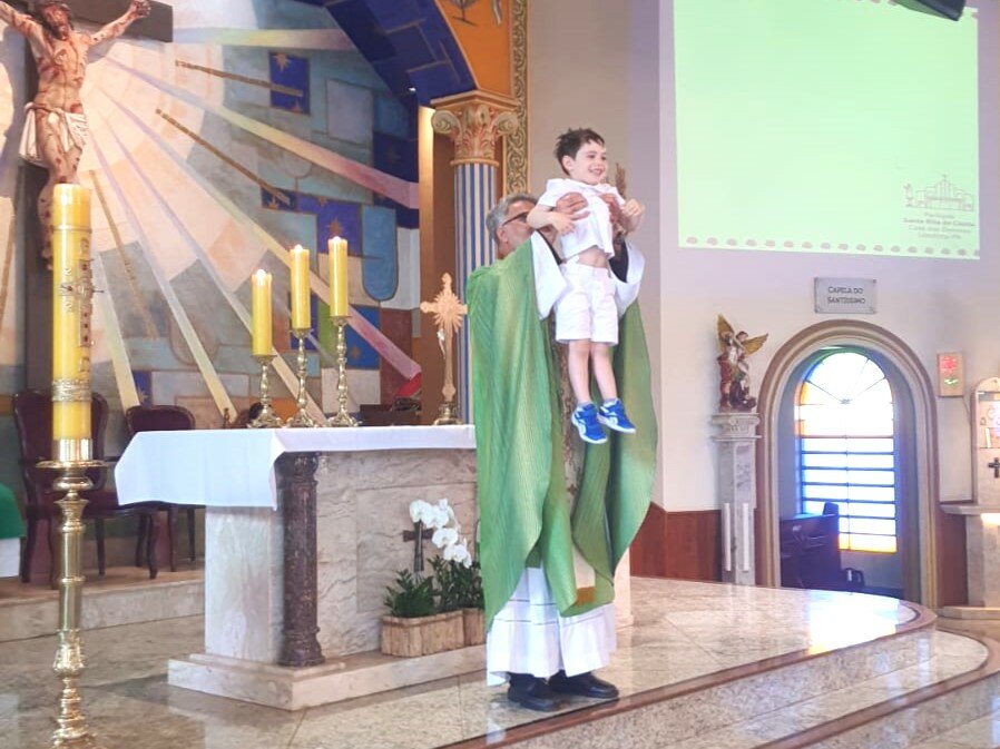 De forma linda e acolhedora, Pe. Humberto apresentou os novos batizados à comunidade, que os recebeu com entusiasmo. Agora batizados e apresentados a comunidade, as 5 crianças fazem parte da Igreja do Senhor.