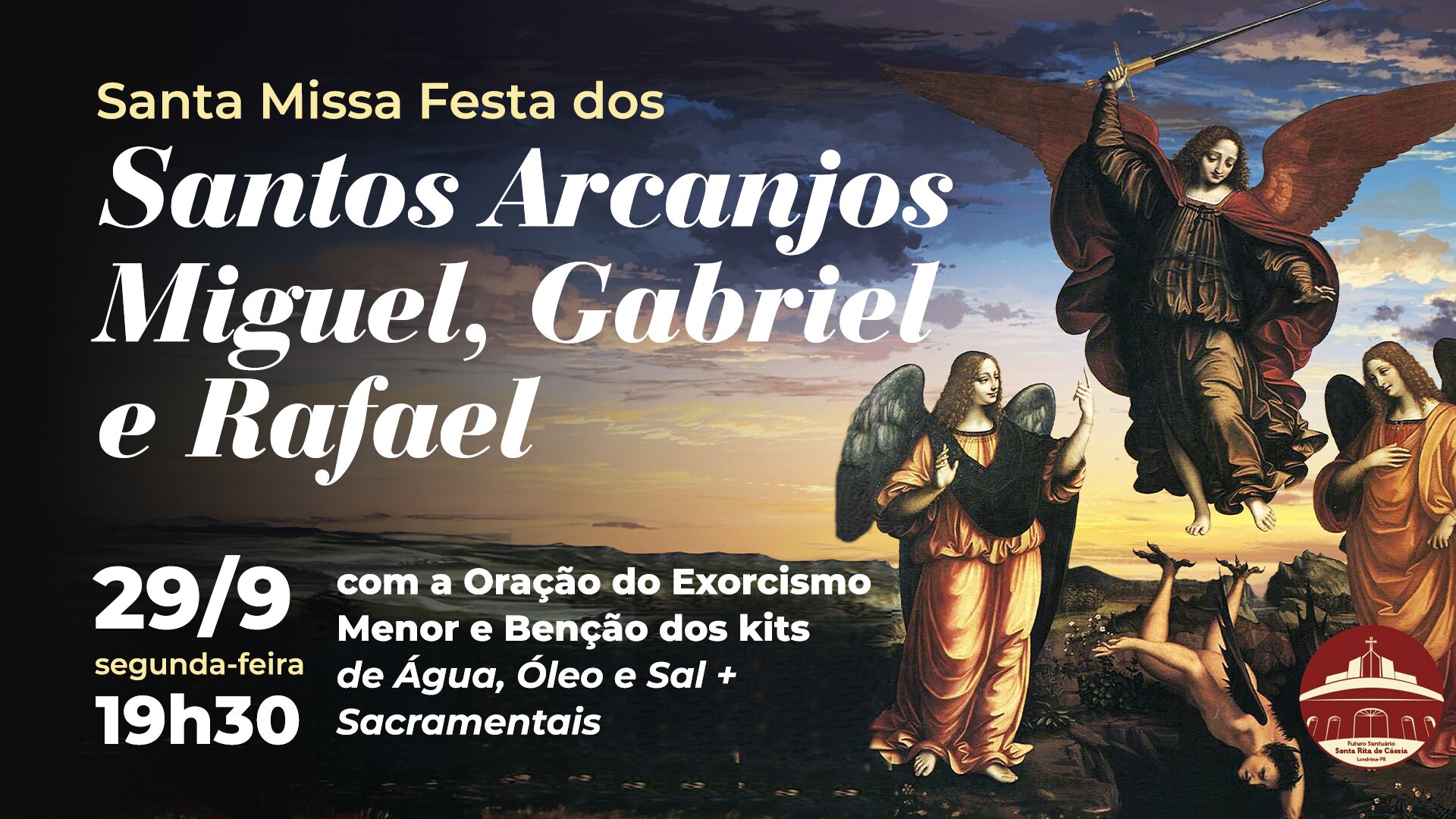 Na data de 29 de setembro, às 19:30 horas, foi celebrada a Santa Missa em honra aos arcanjos São Miguel, São Gabriel e São Rafael, presidia pelo pároco padre Humberto Lisboa. Foi um momento de espiritualidade profunda com a oração do exorcismo menor e adoração ao Santíssimo Sacramento, fortalecendo a fé da comunidade e a devoção aos arcanjos. Houve uma grande participação da comunidade paroquial e de muitos devotos de Santa Rita de Cássia que visitam a paróquia nesta data. A Santa Missa de São Miguel Arcanjo é uma tradição no futuro Santuário Santa Rita de Cássia, a qual acontece todos os dias 29 de cada mês. Você está convidado(a) a vir participar conosco e fortalecer sua caminhada de fé!