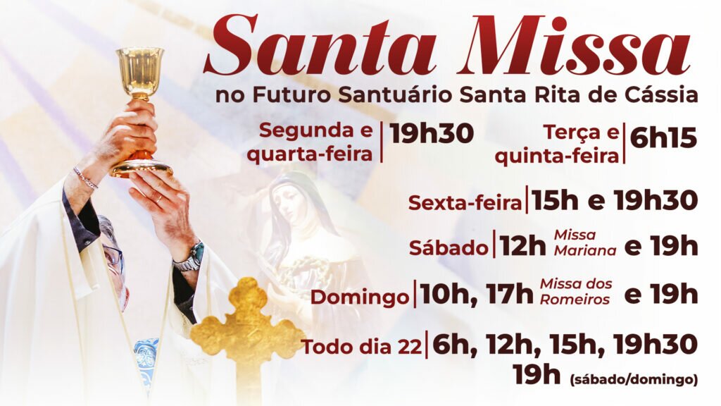 - Quarta: 19h30 (Missa com Novena de Santa Rita)